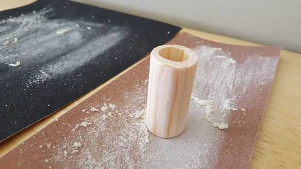 Usando el papel más áspero de la arena, desprender todos los Sierra y marcas de perforación. Utilizar la lija más fina para hacer la superficie lisa. Ruede para arriba un pedacito de arena papel para pulir el interior de los bordes también.