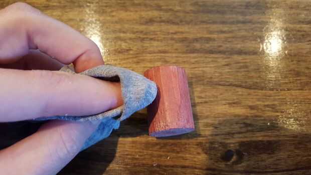 Frote el colgante entero con cera de abejas. Obtener suficiente allí para una capa uniforme. Luego con un paño (recomiendo lona, dril de algodón o algo resistente que no transfieren color a tu proyecto), frote la cera hasta que es cubierta de forma uniforme. Encontrarás que es más fácil de pulir cuando se caliente. Parece chungo al principio. Seguir frotando.
