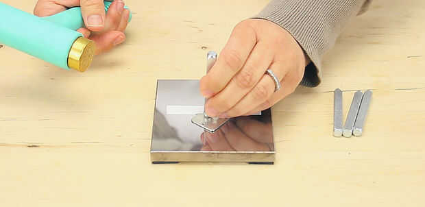 • Lugar la cinta recta de sello en el estaño en blanco para estampar la palabra "amor"