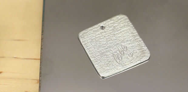 Usando el martillo de Ergo-ángulo, estampar el sello de diseño corazón de fantasía en "el amor"