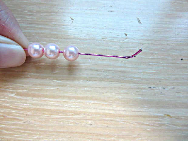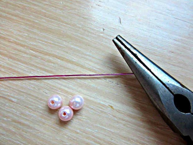 Elegir algunos granos (no más de 4), cadena en la pieza de alambre, que se debe cortar a unos 60 cm.