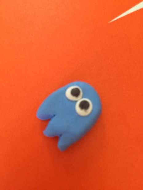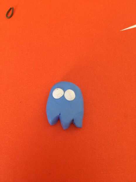 Después de que los fantasmas cuerpos, tendrá que ver. Para hacer los ojos tiene que rodar un poco de arcilla blanca (ver Fig. 1). Hacerlos del mismo tamaño para que un ojo no es más grande que el otro. Después de aplanar las bolas blancas con el dedo luego pegarlas sobre el fantasma (fig 2). Hacer esto con cada fantasma. Luego hacer lo mismo con dos piezas negras pero hacerlas más pequeñas (Fig. 3-4). Si desea que parecen estar persiguiendo a PackMan hacen su cara de ojos hacia la derecha o izquierda.