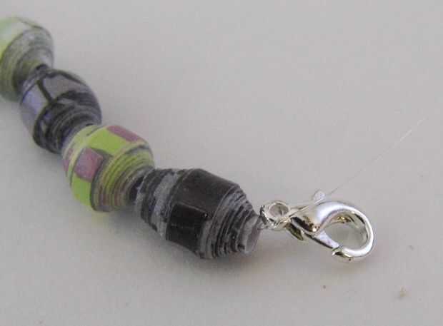 Una vez haya agregado todos los granos, atar en un broche de bisutería en el final y ahora tienes un collar hermoso papel listo para usar!