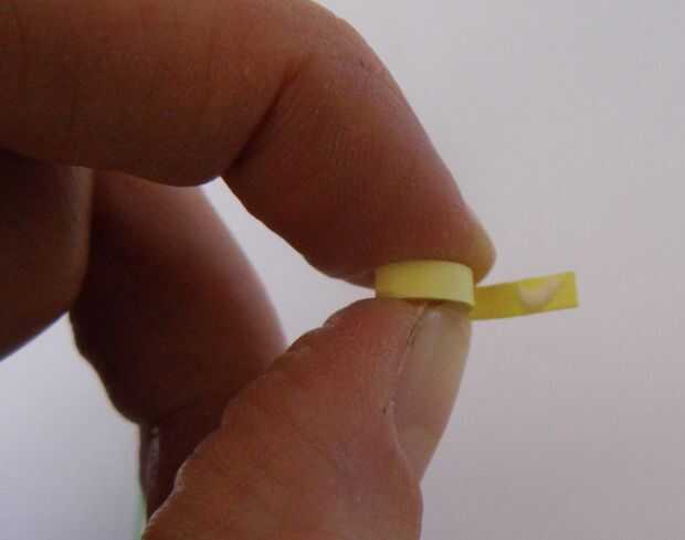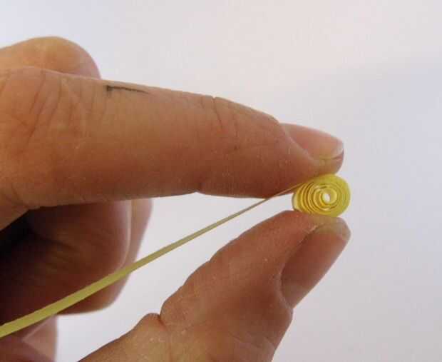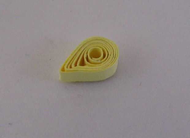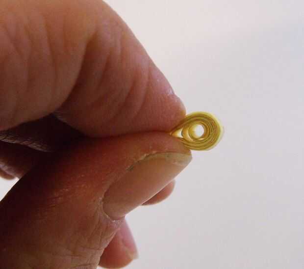 Una vez que tenga un número adecuado de las tiras, envuelva el papel alrededor de la brocheta hasta que ha hecho un círculo de papel de 5 mm de ancho. Cuidadosamente retire de la brocheta y el papel de desentrañar una fracción muy pequeña. una vez que feliz con la mirada, cortar cualquier exceso de papel y pegamento al final abajo. Una vez pegado, Pellizque suavemente el círculo de papel en un momento hasta que se convierte en una forma de gota de lágrima.