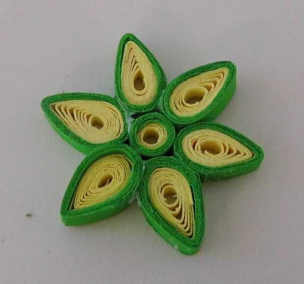Todos sus 6 pétalos al círculo de centro del pegamento, asegurándose de que parte del pegamento se adhiere a cada pétalo adyacente así. Finalmente hacer un pequeño bucle, usando el mismo proceso para hacer el círculo del centro y pegamento para el pétalo superior.
