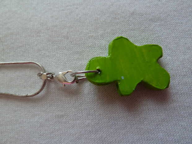 Agregar alambre para el colgante y un anillo de la curva de él. Tome otro trozo de alambre y doblarlo en forma de bucle. Añadir el cierre al bucle. Añadir el lazo con el cierre a la cadena.