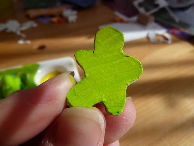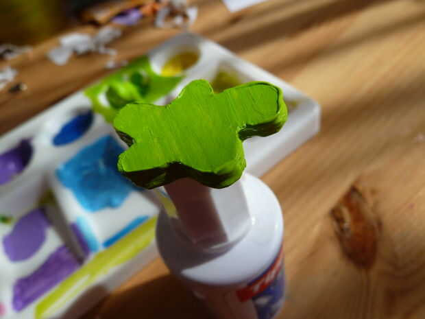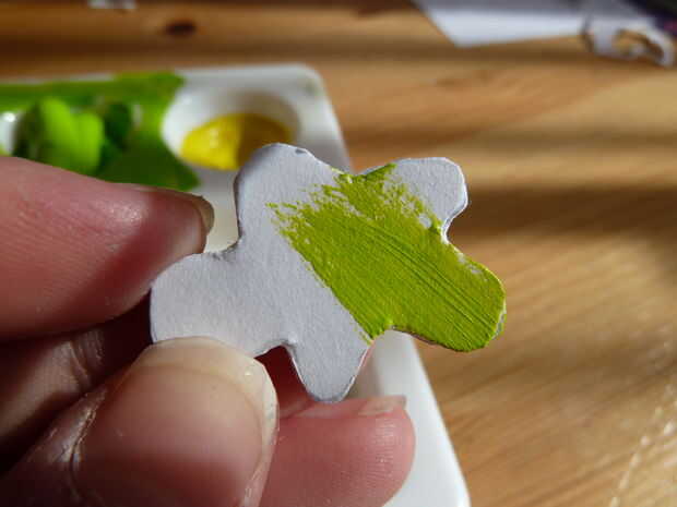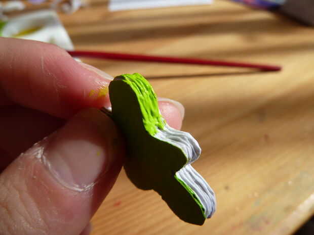 Cuando la parte frontal es totalmente seca, pintar los lados de su colgante. Sus dedos probablemente recibirá una capa de pintura demasiado en este punto. Deje que los lados se seque. Por último la parte posterior de la pintura y deje secar.