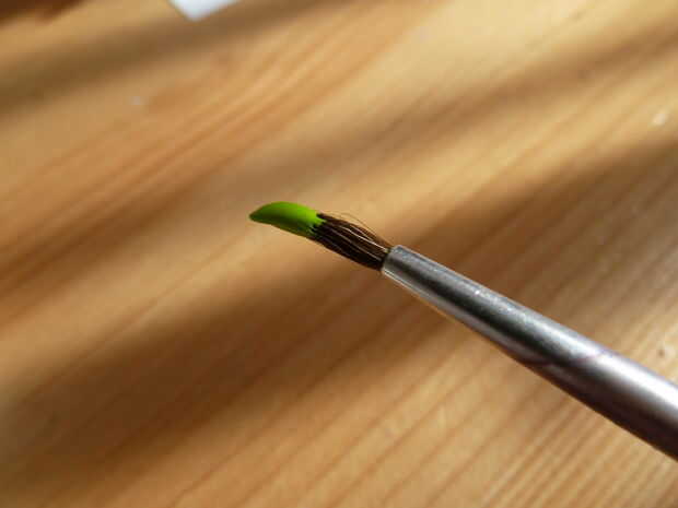 Empezar por la parte frontal de la pintura y dejarla secar. Si es necesario, dos capas de pintura. Puede ver la diferencia de una y dos capas de pintura mirando la foto tres y cuatro.