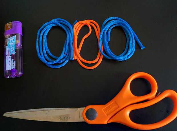 Paso 1: Se necesita... Paracord u otra cuerda fuerteMosquetónEncendedorTijerasPaso 2: cuerda Corte el paracord hasta la longitud que desee y añade 2 pulgadas. 2 pulgadas será para atar el nudo. Quemar los extremos, por favor, cuídate!Paso 3: Haga un