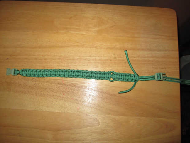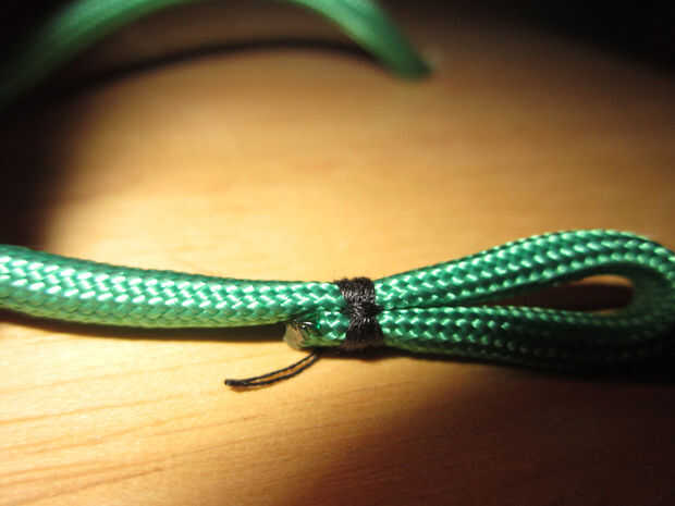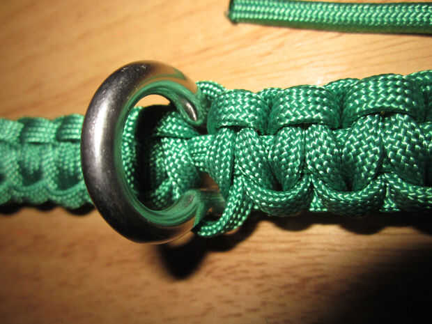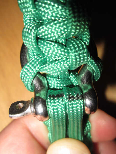 Tomar los dos extremos sueltos del largo del cable y llevarlos en la parte inferior del collar y el grillete. Marque donde lazo alrededor y asegúrese de que son. Quemar primero los extremos para que no debilite.