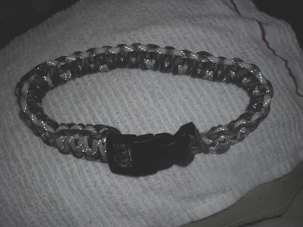 yo llamo a esto una 'doble doble Cobra armadura"que usé para hacer un collar para uno de mi basset hounds. Muy simple - sólo doble su cables y realice la cobra de la armadura; Usé una hebilla de metal de 3/4". Esto hizo que más de una armadura de cobra regular.