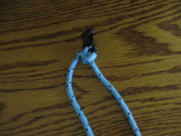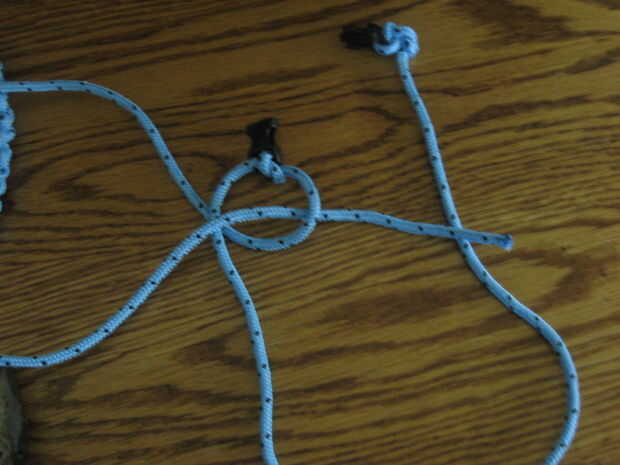 En primer lugar, hacer un lazo con la hebra larga bajo la parte principal. Luego, tome la punta de la hebra larga y tire de él y en el lazo. Debería verse como la última foto.