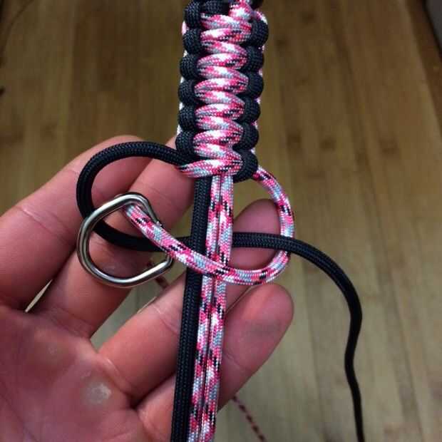 Luego de la trenza en anillo en D con el pedazo de centro de paracord. Seguir haciendo la misma trenza.