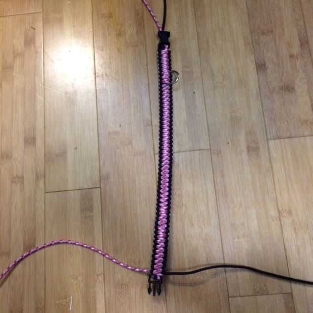 Mantener trenzado hasta la otra hebilla, luego cortar y fundir los extremos. Esto era para y 17 pulgadas collar de perro.