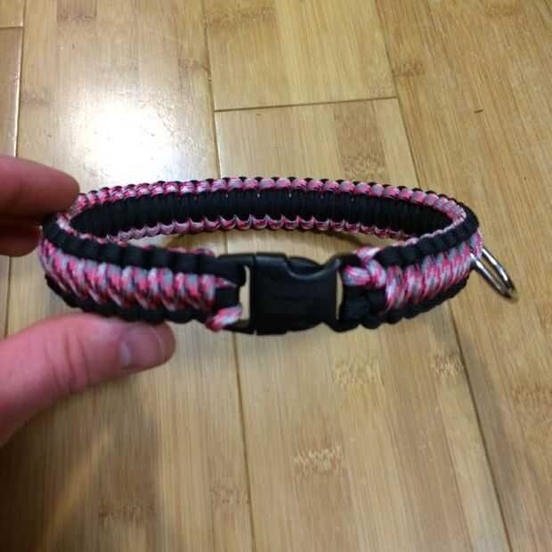 este es un collar de perro de paracord ajustable usando la armadura de cobra. Es sólo mi segundo intento en el uso de paracord, mi primera es una simple cobra tejer pulsera con hebilla. Me tomó unas 2 horas hacerlo hoy y realmente no pensé que iba a