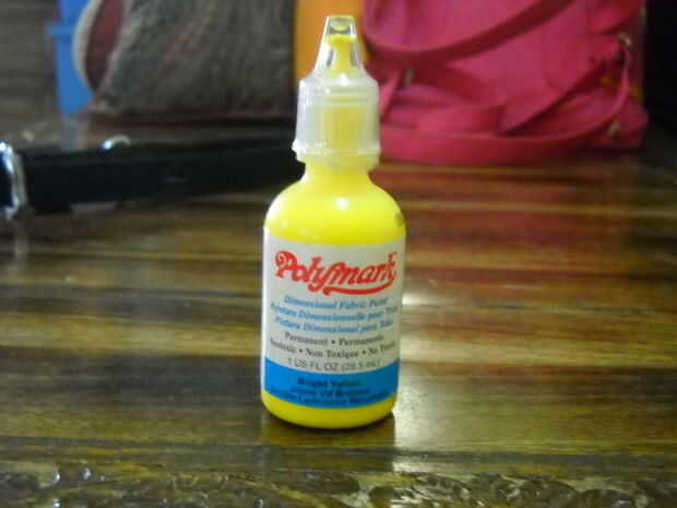 He usado raisedpaint porque es resistente y no de lavado fácil, utilicé polymark, pero podría utilizar pinturas de tela normal si su collar es de un color claro o lo que usted quiere. Eso es por qué se llama personalización duh, estúpido me.