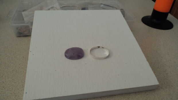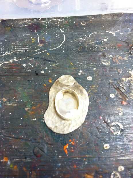 5. Coloque el cable de la luneta en el centro de la placa base y dibujar alrededor del alambre de bisel, con un lápiz, para mostrar donde se sitio el cabujón.