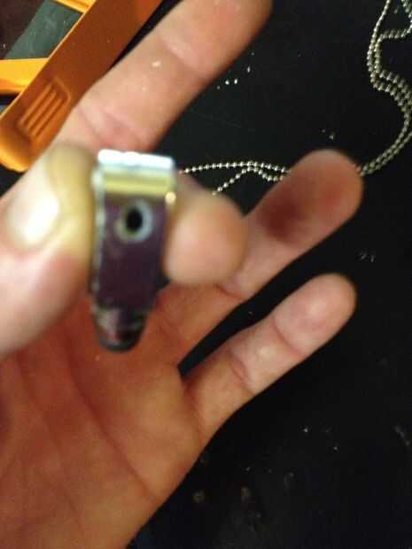 Paso 2: agujero directamente a través del extremo superior de la aguja lo suficientemente grande para cadena para adaptarse a