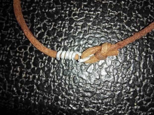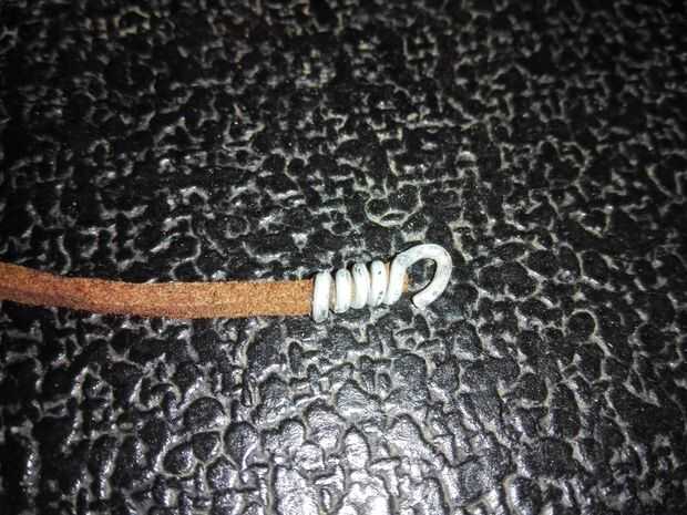 Método 3: Enrolle un pedazo fino de alambre alrededor de un extremo del collar y atar un nudo del resbalón en el otro extremo. Hacer un pequeño gancho con el alambre con unos alicates y simplemente sujétela en el lazo en el otro extremo. Fácil clip en y fácil de despegar, pero ser lo suficientemente robustos para no dejarlo ir suelto por cuenta propia. Tiene el mismo pro como método 2, pero es mucho mejor en mi opinión. Nota el gancho puede que tenga algunos lijado hacia abajo donde se corta.