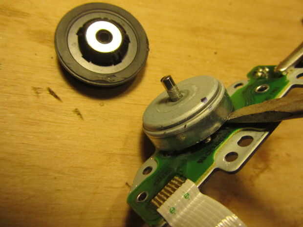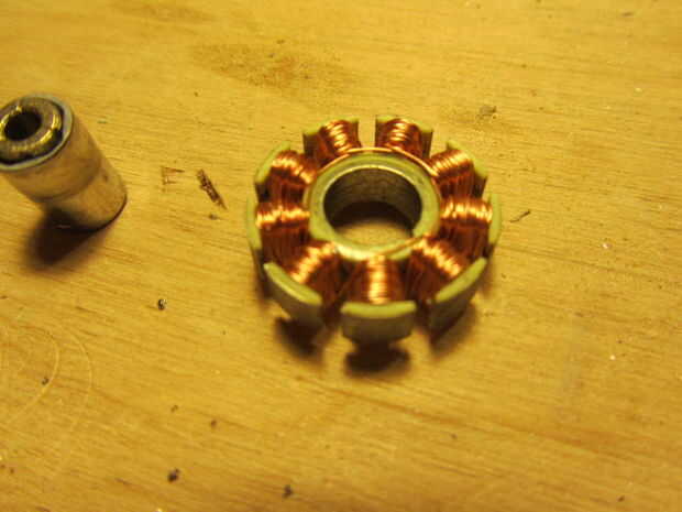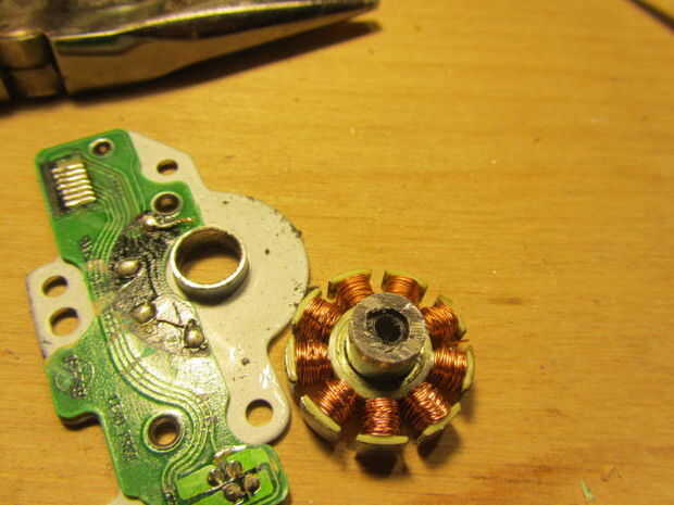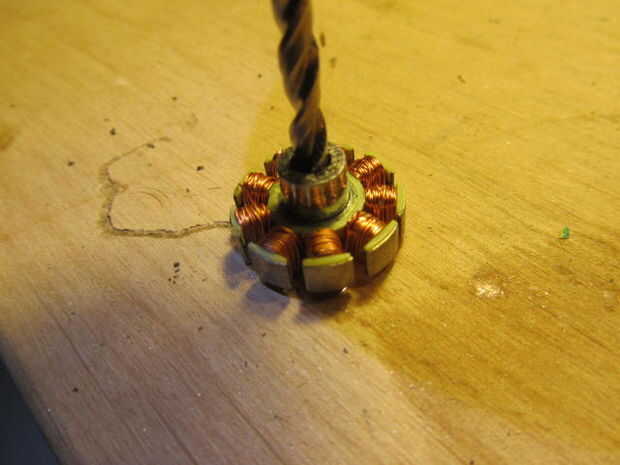 Primero Levante el off el estator (o caso) del motor. Usé un flathead destornillador para apalancar apagado. Ahora la parte inferior de la pieza central de la rutina y taladro o golpee hacia fuera el pedazo de centro del rotor.