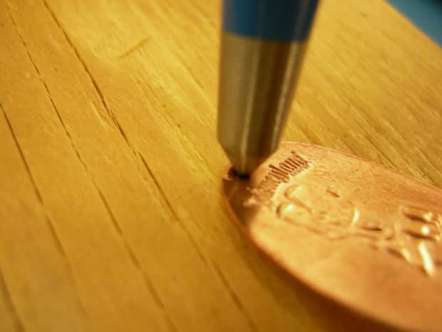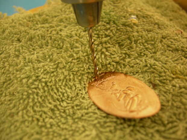 3-taladro a guión (puse el último centavo en un trapo en caso de que empezó a girar, yo no quería cualquier arañazos)