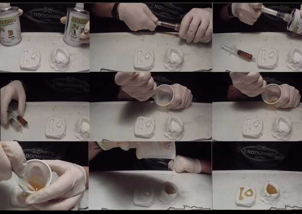 en moldes vacíos van a colar la resina de dos componentes en las proporciones 1: 1 según las instrucciones del fabricante
