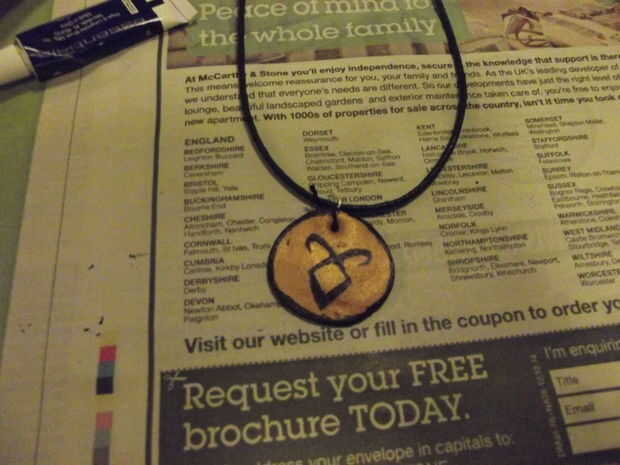 Recientemente un amigo y yo hemos estado leyendo los instrumentos mortales, y decidí hacerle un regalo de Navidad. Después de un poco de pensar, decidí hacer un collar de rune, en particular la runa del poder Angélico (esta es también la más fácil dibujar, jejeje).