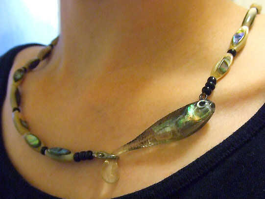 la tienda de trastos vende un número de criaturas de aspecto realista. Pescados del faux vienen en varios colores con estilo.