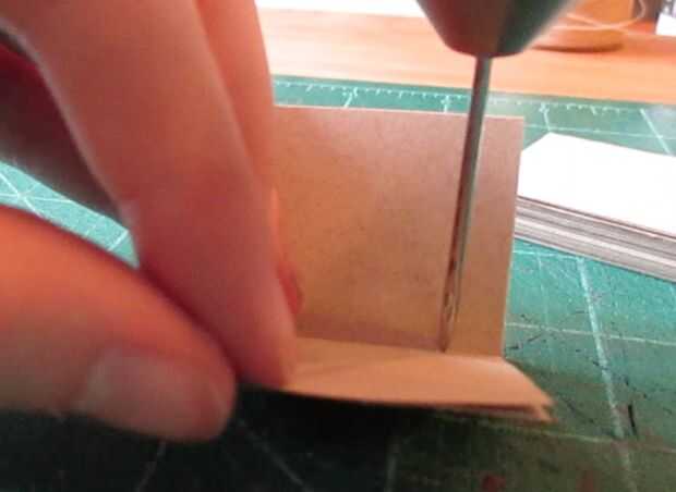 Asegúrese de que su línea de agujeros perforados, si no, tendrás que hacer algunos nuevos, o poke agujeros adicionales en las secciones mal. Medir su hilo envolviéndolo alrededor del borde largo medio tantas veces como usted tiene secciones. Por ejemplo, decidí mantener 10 secciones cada 1.5" y el hilo terminada siendo 22" de largo.
