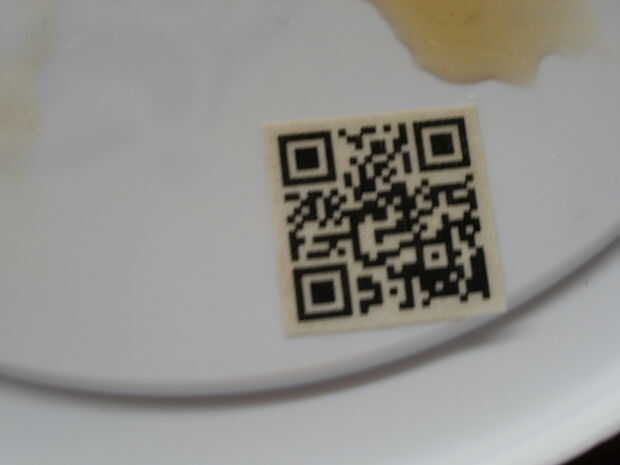 No quería que el papel es demasiado brillante para que entre el papel utilizando una bolsa de té (que ya usé para el té) y pasa sobre el código QR. Luego lo dejé secar.