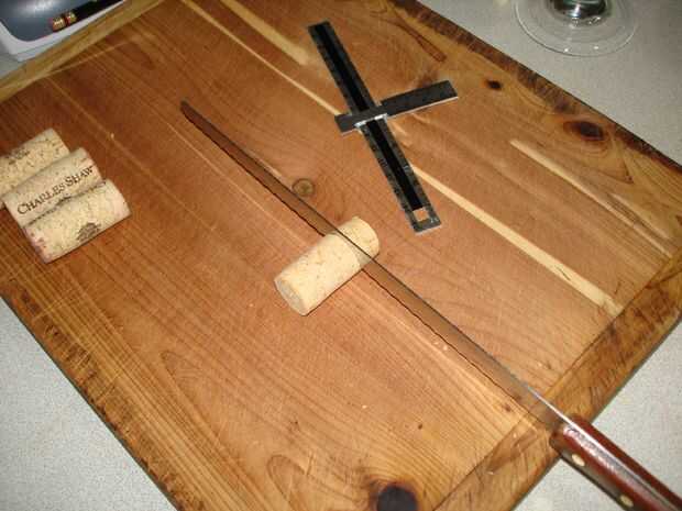 Corte 7 5/8" granos de corcho con un cuchillo de pan dentado.