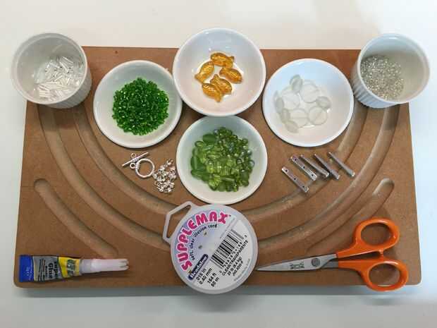 Granos - usé 4 goldfish y surtido cristal verde y perlas de vidrio claro/heló