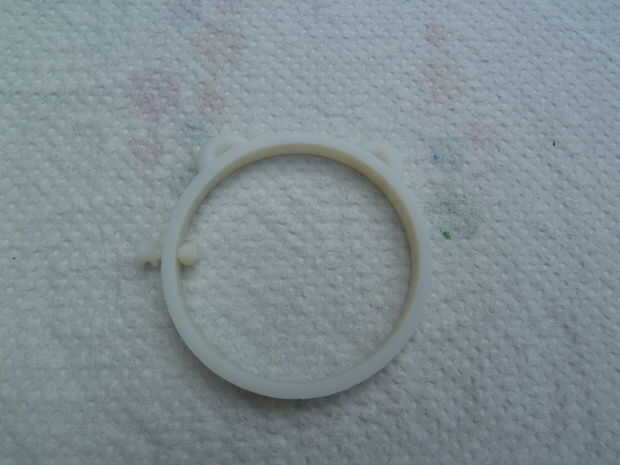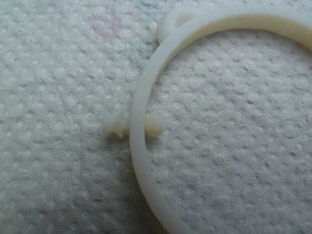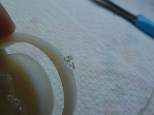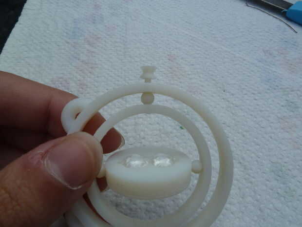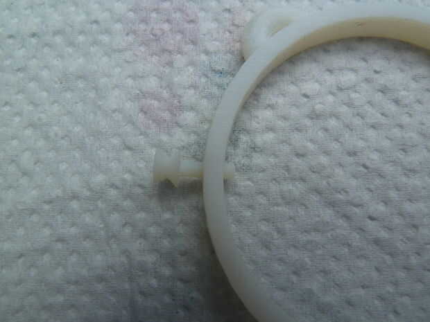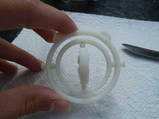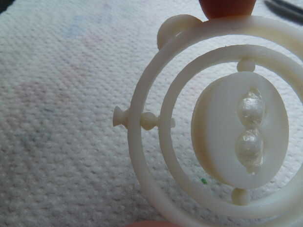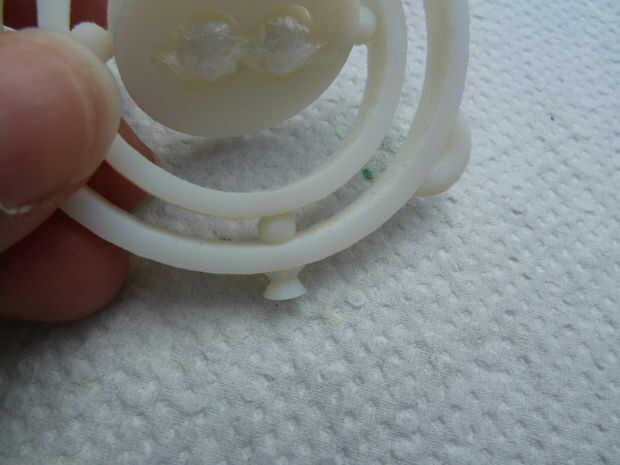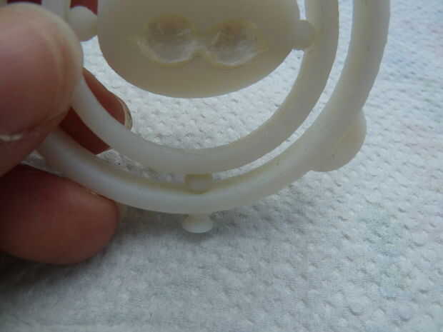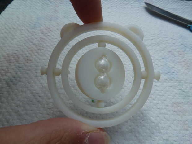 Para conectar el círculo más grande con el resto de la turner de tiempo, comienza por llenar los dos orificios restantes en el medio tamaño de círculo. Puede hacer esto por una pieza de fusión, formando un poco con las manos y agregar como se muestra. Cuando los agujeros se han llenado, retirar el exceso al igual que en el último paso.
