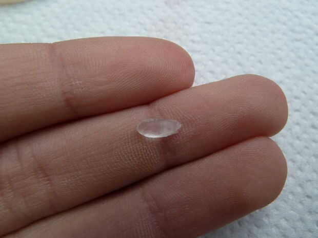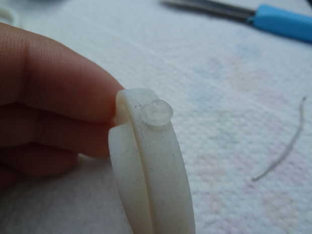 Ahora toma el círculo más grande. Añadir los botones como se muestra en la imagen, no totalmente a través todavía. Derrita el relleno para arriba el agujero y empuje la última parte de la perilla a través. Repetir este proceso en el otro lado. Fundir otra vez en el interior y quite el exceso de plástico.