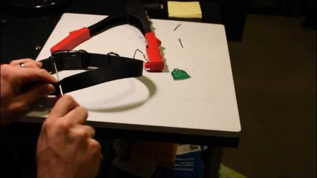 Ahora necesita un agujero en el cuello donde desea que las etiquetas que se van. Empecé marcando los lugares donde irían las etiquetas. Elegí puntos uniformemente distribuidos a lo largo del collar y permite aún el collar tamaño y ajustarse adecuadamente. El collar de la marca a través de los agujeros de la etiqueta en el lugar que desea.