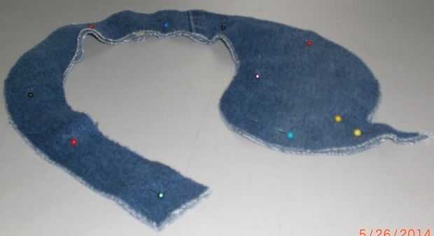 Vuelva a la tela y presione luego clip hasta líneas de puntada Asegúrese de que no enganche el hilo. Esto reducirá el volumen y la tela se pone mucho mejor en el cuello.