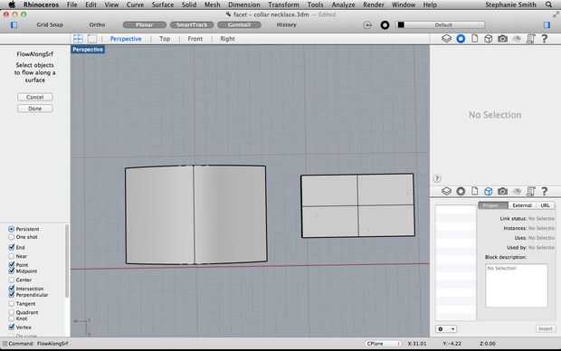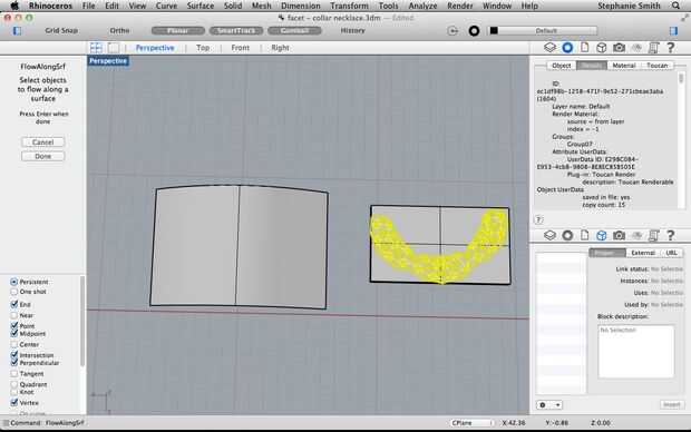 - Seleccione FlowAlongSrf para el pedazo de collar a lo largo de la curva que acaba de hacer la curva.