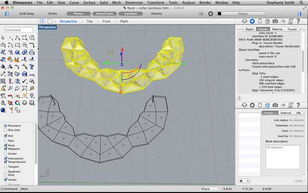 - Mover a lugares deseados simétricamente a ambos lados de la pieza del collar, asegurándose de que la protuberancia intersecta con la superficie.