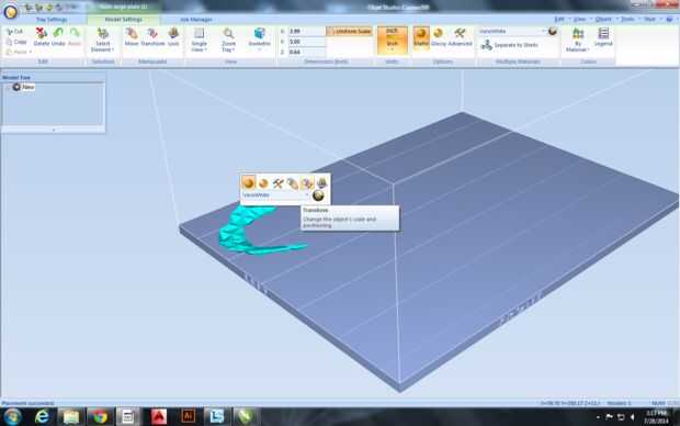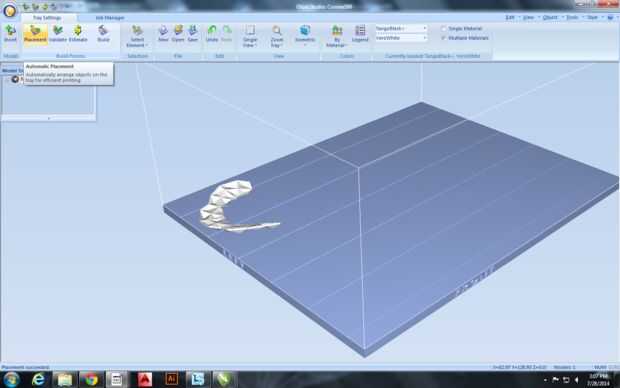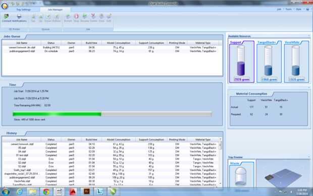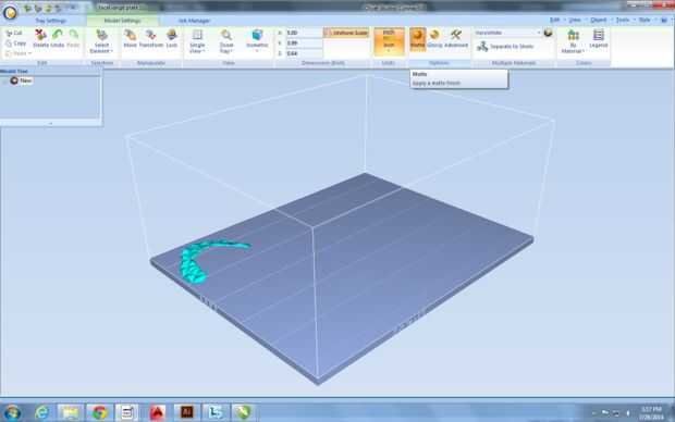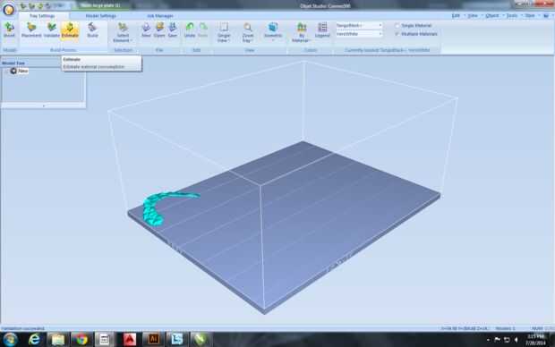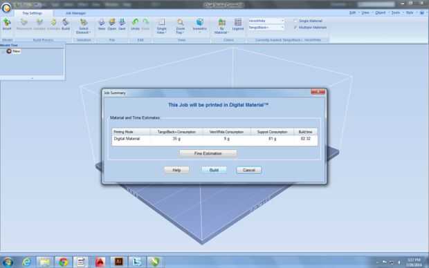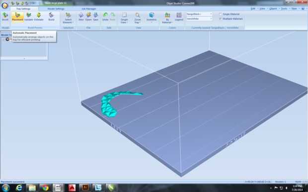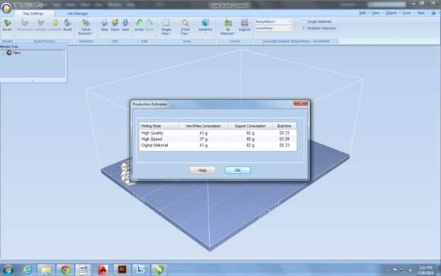 Utilicé una impresora objet, que imprime de ficheros .stl crudo, por lo que simplemente podemos subir el archivo que acaba de terminar en Rhino.
