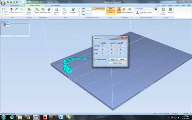- Cuando se selecciona el objeto, aparecerá una pestaña de Configuración de modelo en la esquina superior izquierda. La opción transformar a reorientar la pieza.