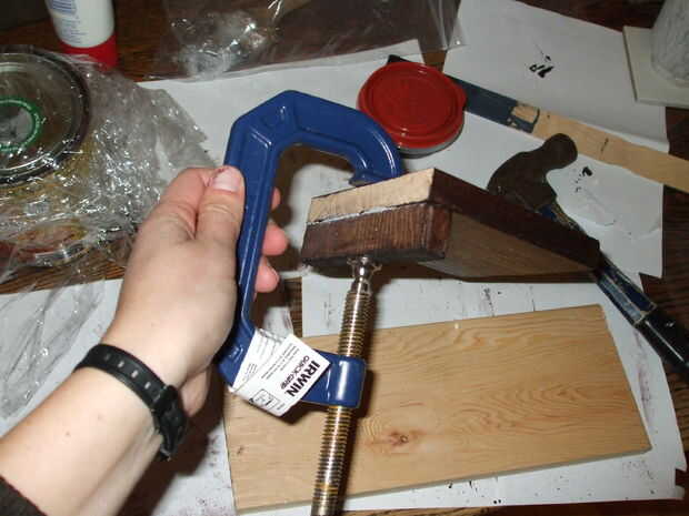 5) raspar lejos exceso de pegamento. Abrazadera ligera si quieres mientras el pegamento seca.