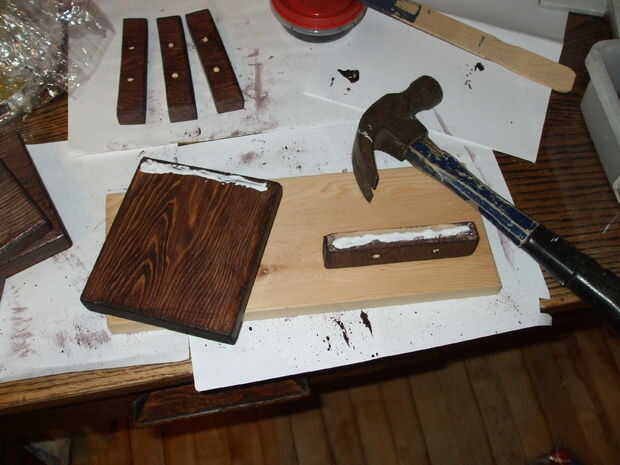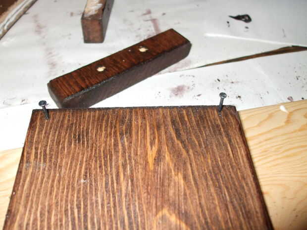 2) me martilló primero dos pequeños clavos en la parte superior de la 5" pieza.