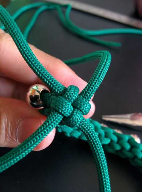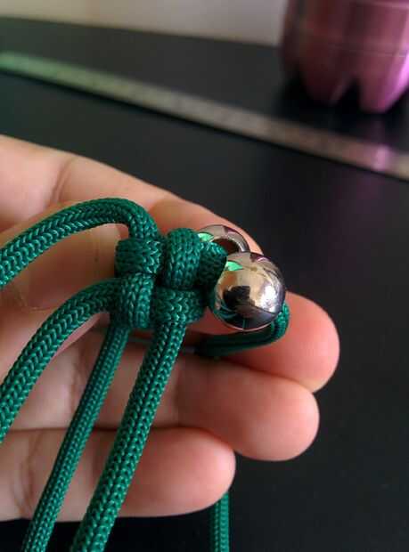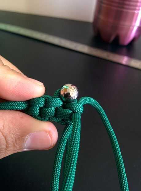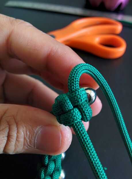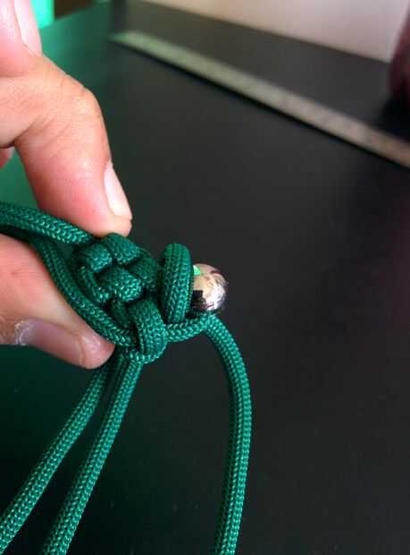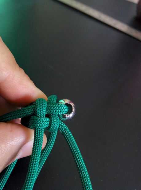 - Hacer un nudo cruzado tal que el grano se asegura en la parte superior derecha. Hacer que esta empresa nudo pero no será muy mucho firma por el espacio adicional ocupado por cordón, por lo tanto...