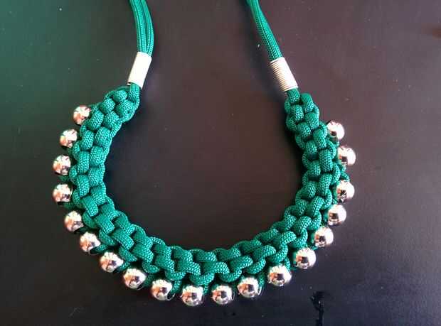 - Tire de la bobina de paracord para llegar a los extremos del collar.