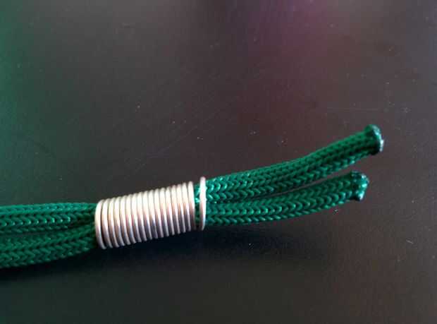 - Introduzca con cuidado el paracords doble en ambos lados dentro de la bobina.