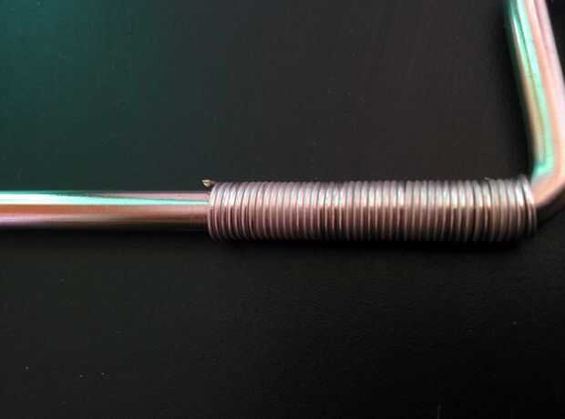 Agarra un alambre de la joyería y una pequeña barra cilíndrica como objeto. Sólo asegúrese de que el grueso de la barra debería permitirle hacer una bobina que es lo suficientemente grande para dos cadenas de paracord pase a través de él. Ver imágenes de arriba y sigue: