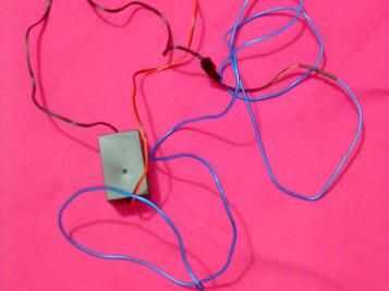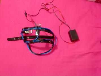 Después de eso fui a través del cable por el cuello y fijándolo con cinta adhesiva para cubrir el cuello. El cable que alimenta el neón en el inversor (caja negra) fue colocado en el mango con cinta aislante. La batería (9v) + inversor en la bolsa y asegurado con cinta de velcro en el cuello. Botón de encendido / apagado es interior también puede sufrir modificações más.