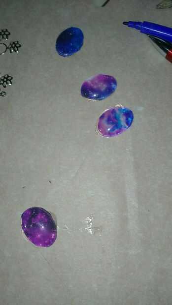 No tienes que imprimir la imagen. Siempre puede dibujar la galaxia con esmalte de uñas. No tengo todos los colores, pero voy a intentar explicarlo. Poner puntos con color blanco para las estrellas. Poner del mismo color en una esquina. Ahora toma color púrpura y otro brillo púrpura en el lado izquierdo. A continuación añadir el color azul para llenar todo. Agregar color negro antes de azul esmalte de uñas se seca y se mezcla.