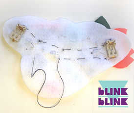 Repetir el camino una proceso de costura, pero esta vez Conecte los lados positivos de soporte de la batería a las tres patas bucles positivo de los LEDs hasta llegar al titular de la segunda batería. Pase el hilo por el lado positivo otros batería del titular. Hacer un nudo y cortar el hilo.
