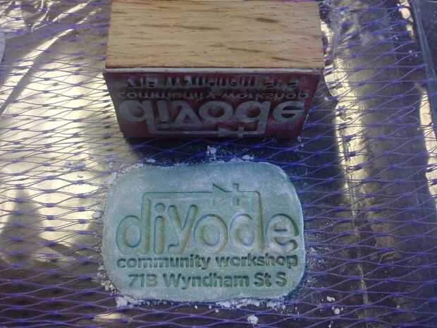 Presione el sello firmemente en el sugru. Trate de salir recto hacia arriba o se distorsionará la impresión.